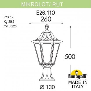 Производитель светильника - Fumagalli. Светильник имеет цоколь E27, рабочее напряжение 220V. Материал корпуса изделия - Полимер/Оргстекло. Цвет арматуры: Черный/Белый. Светильник рассчитан на площадь 12кв.м. Светильник подойдет для устройства основного и акцентного освещения. Купите Наземный фонарь Rut E26.110.000.AYF1R по выгодной цене с быстрой доставкой на Eurosvet.by...