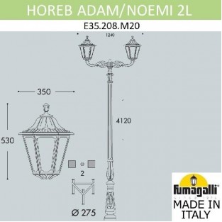 Производитель светильника - Fumagalli. Светильник имеет цоколь E27, рабочее напряжение 220V. Материал корпуса изделия - Полимер/Пластик. Цвет арматуры: Черный/Белый. Светильник рассчитан на площадь 20кв.м. Светильник подойдет для устройства основного и акцентного освещения. Купите Наземный фонарь Noemi E35.205.R20.AYH27DN по выгодной цене с быстрой доставкой на Eurosvet.by...