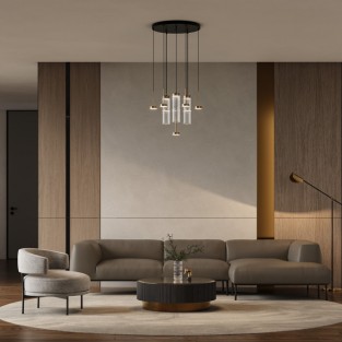 · Подвесные светильники. Эта категория представлена изделиями, крепление которых к потолку осуществляется посредством подвесов. Часто такие светильники используют для оформления освещения над барными стойками, столами, в помещениях с большой высотой потолков.