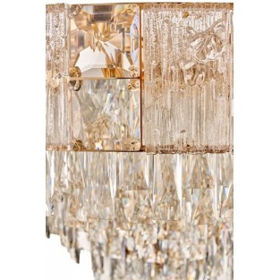 4) Светодиодные люстры с хрусталем. Это достаточно новая группа товаров, успевшая отвоевать себе значимое место на рынке светотехники. Вся прелесть в том, что в таких люстрах световые элементы устанавливаются непосредственно перед хрусталиками, тем самым усиливая эффект игры света.