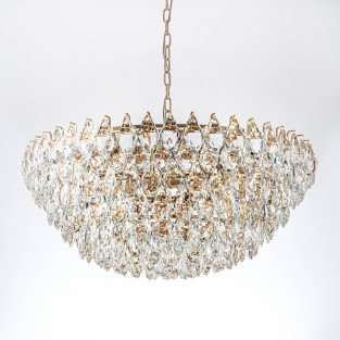 Линия потолочных и подвесных светильников Dakisa c каскадом хрустальных подвесок оригинальной объемной формы и основанием в цвете глянцевое золото выглядит современно, притягательно и стильно...