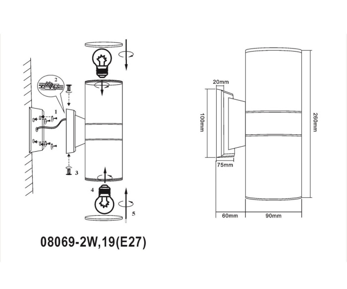 Настенный светильник уличный 08069-2W,19(E27)