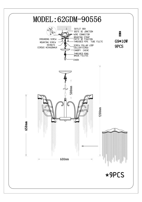 | Количество ламп, шт | 9 |