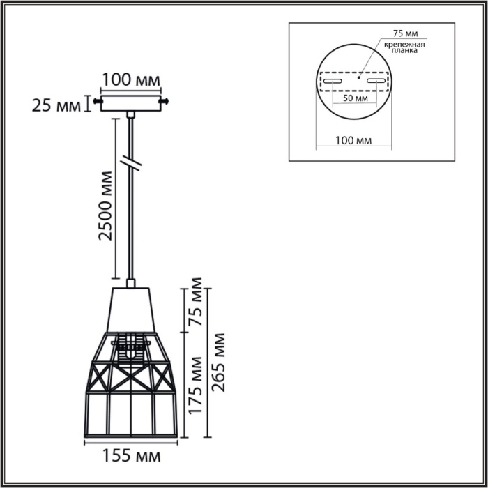 | Форма плафона/абажура | конус |