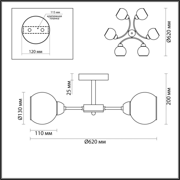 | Форма плафона/абажура | шар |