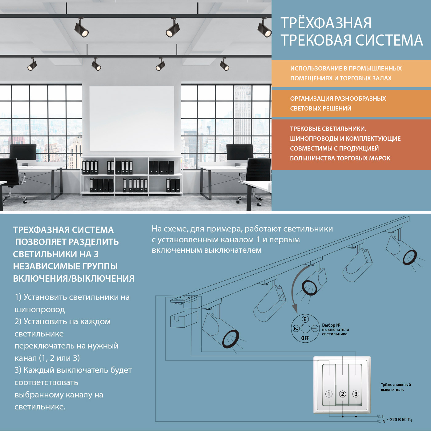 Используя трёхфазную трековую систему Elektrostandard Вы можете реализовать различные сценарии, отвечающие задачам конкретного помещения.