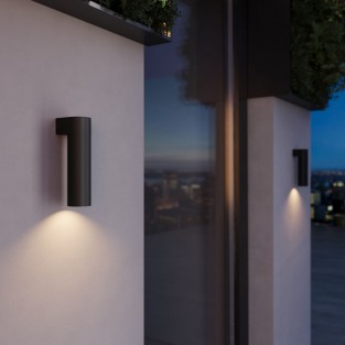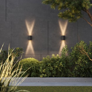 4. Для подсветки всего фасада – лучше рассматривать двусторонние изделия. Они дадут свет и вверх и вниз, а расположить их лучше где-то посередине стены.
